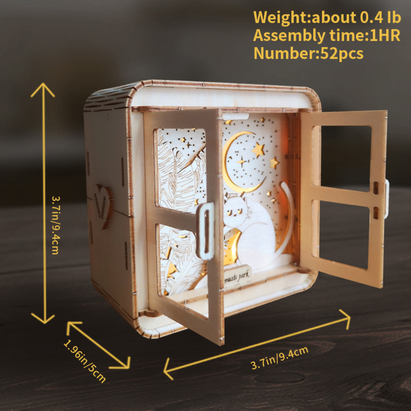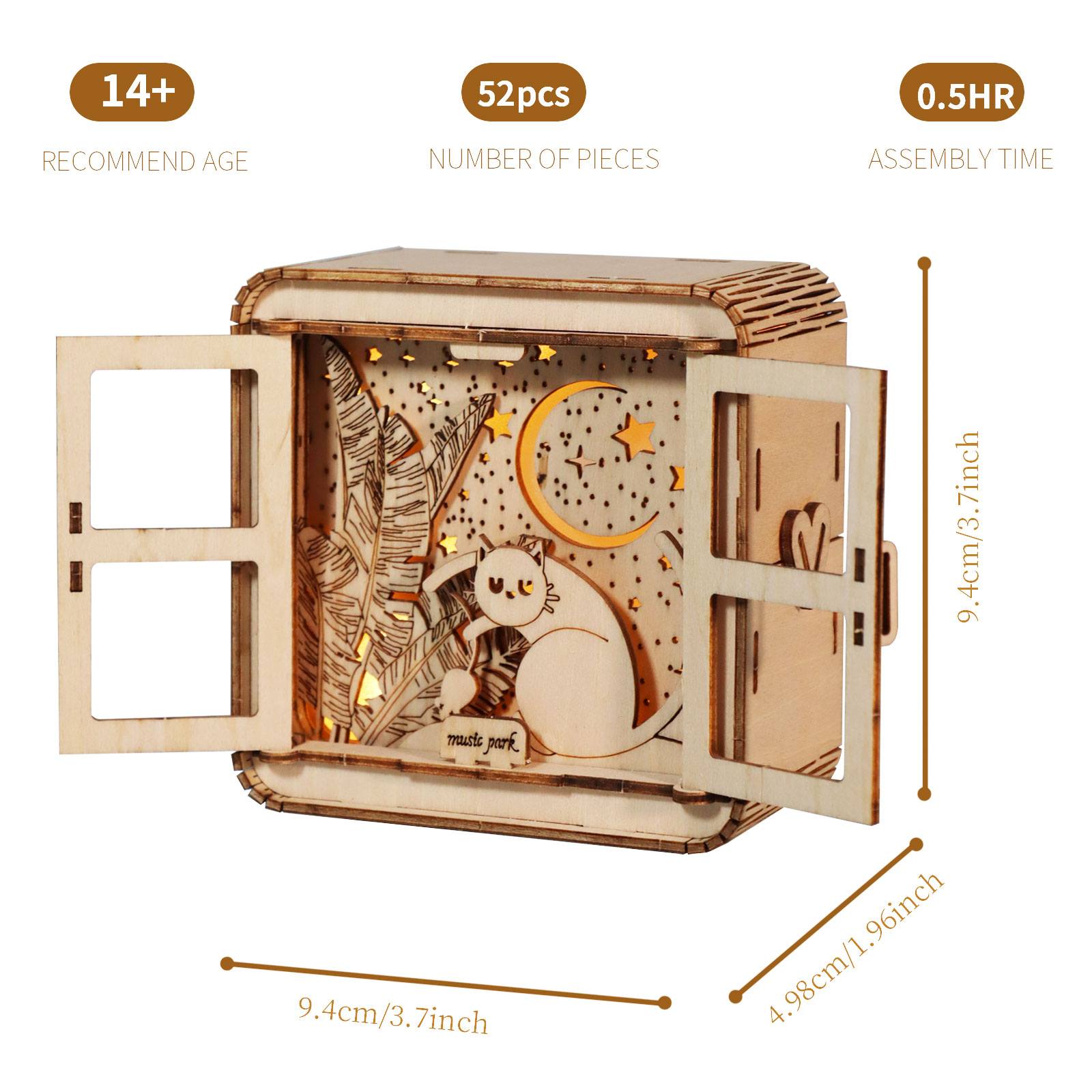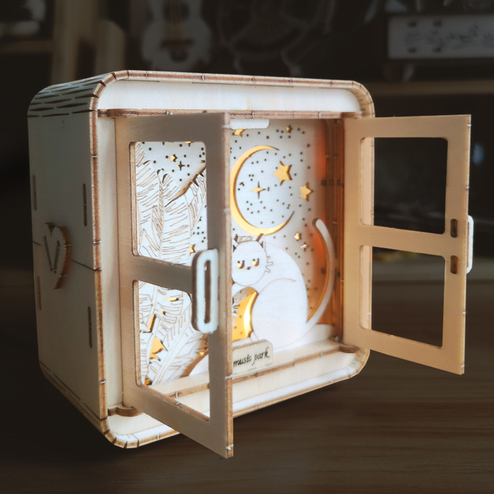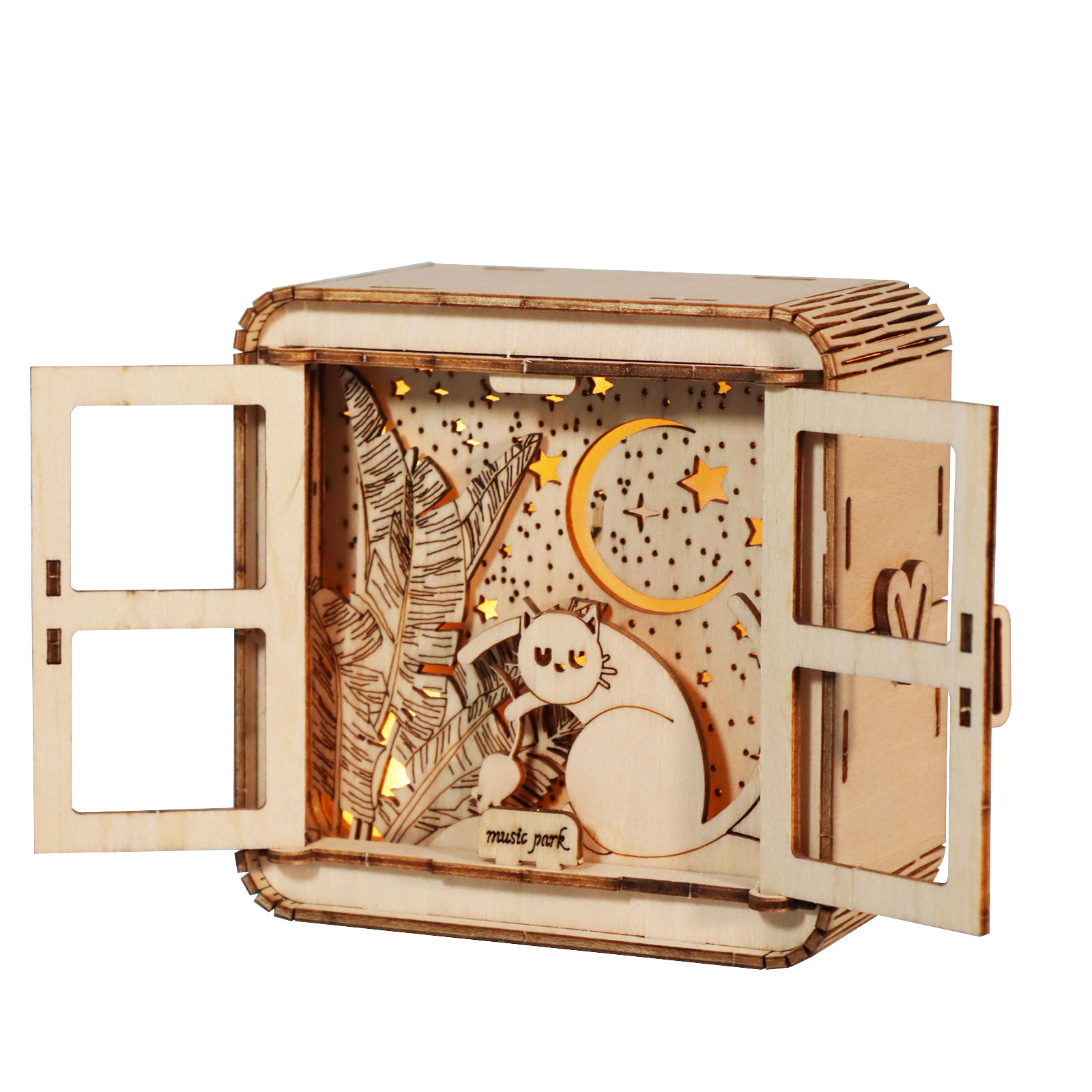 MUSIC PARK 3D Wooden Puzzles Cat Model Kit Night Lights Desk Decorations