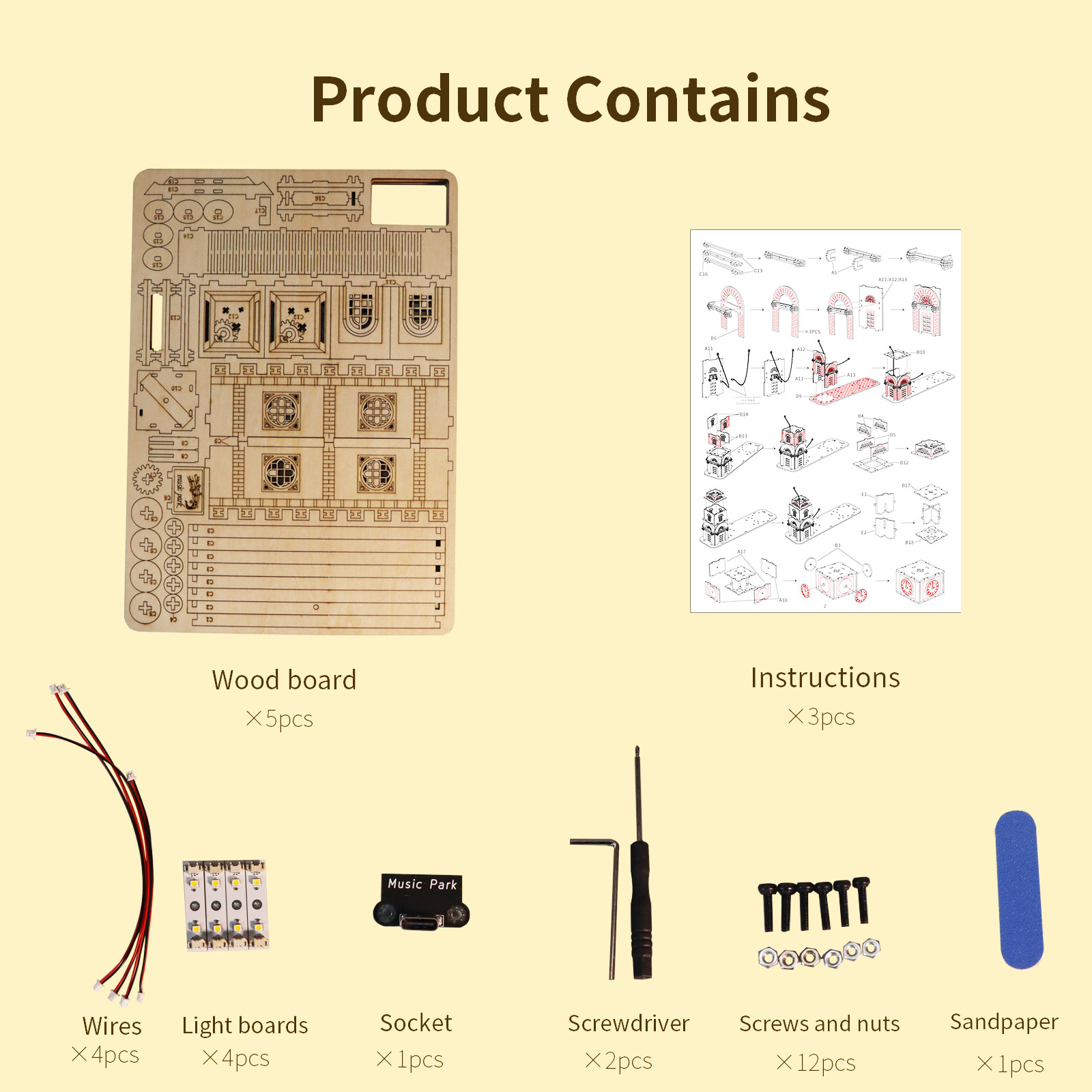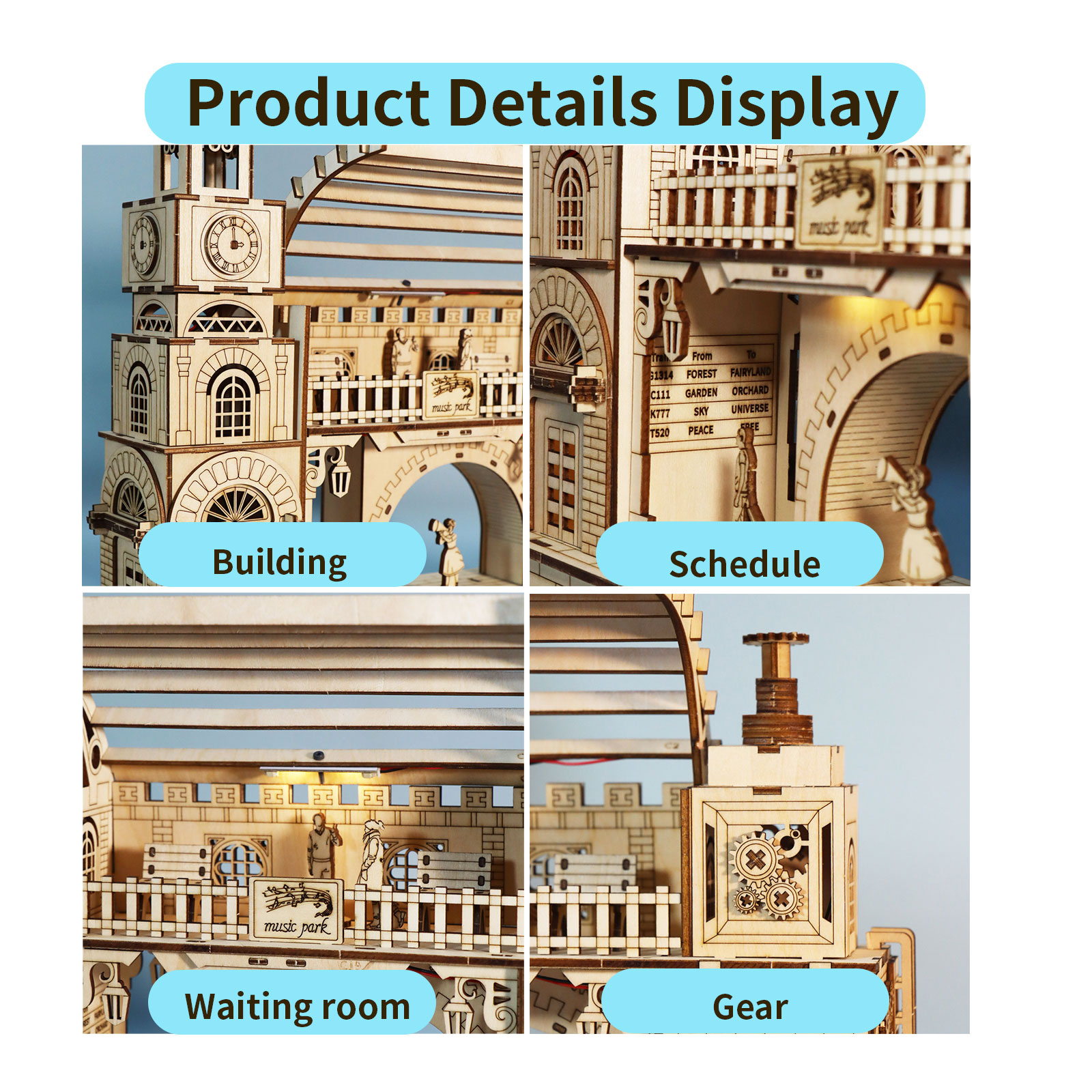 -MUSIC PARK 3d Wooden Puzzle Gear Ferris Wheel Music Box You Are My Sunshine Handmade Assembly Model Kit